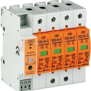 OBO V25-B+C/3-AS : Chống sét In 30kA/pha, Có còi báo chống xung sét 10/350us, xung lan truyền 8/20us, trên đường truyền